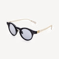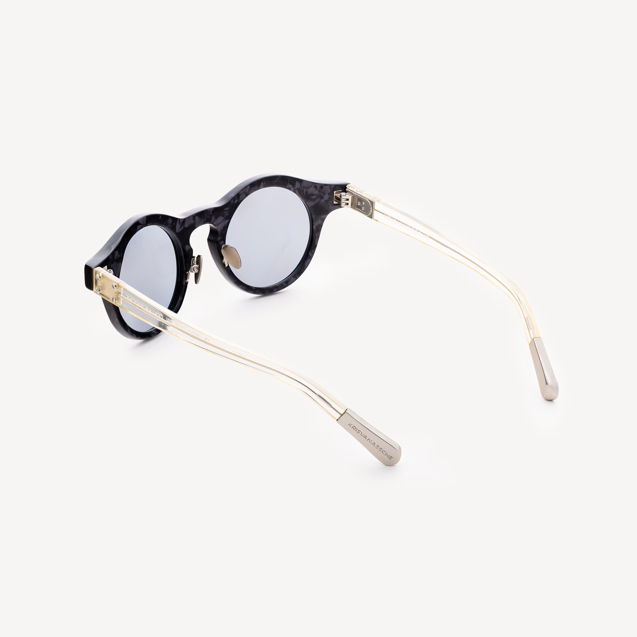 Lunettes de soleil rondes Linda Farrow x Kris Van Assche, édition 2012. Modèle noir et gris. Vendu dans sa boite d'origine avec étui et chiffonnette.