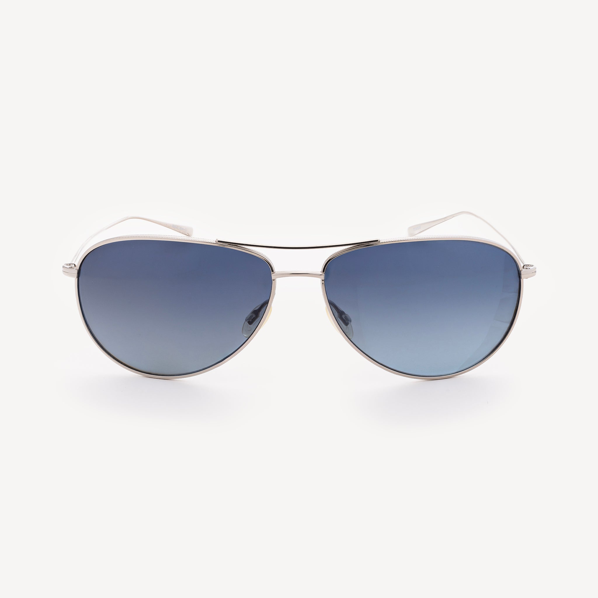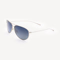 Lunettes de soleil, modèle Tavener, avec monture et cerclage gris et verres polarisés bleu nuit. Vendues dans leur boîtier d’origine avec étui.