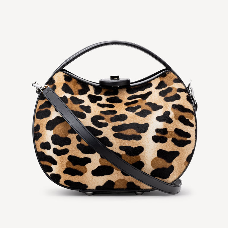 Calfskin handbag with leopard print. In perfect condition. Sold in its original pouch.