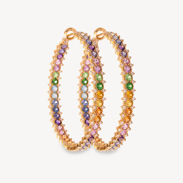 - Materials: 18K yellow gold (22.04g), Multicolored sapphires (6.40cts), Blue topazes (1.68cts), Amethysts (0.91cts), Tsavorites (0.86cts), Diamonds (1.62cts)