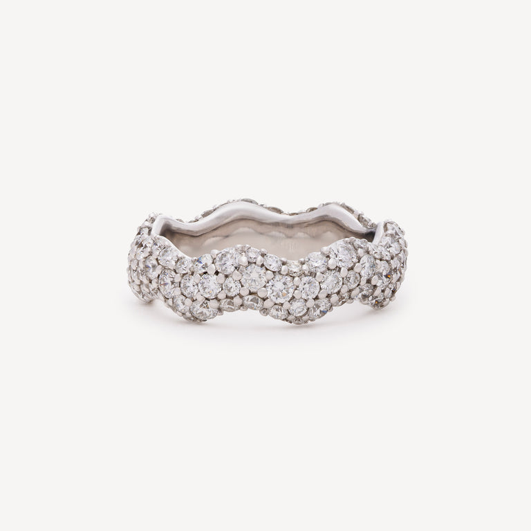 This Let It Flow ring in white gold, adorned with diamonds, embodies fluid, contemporary elegance. Its undulating design evokes the natural movement of water, adding a discreet touch of sophistication.