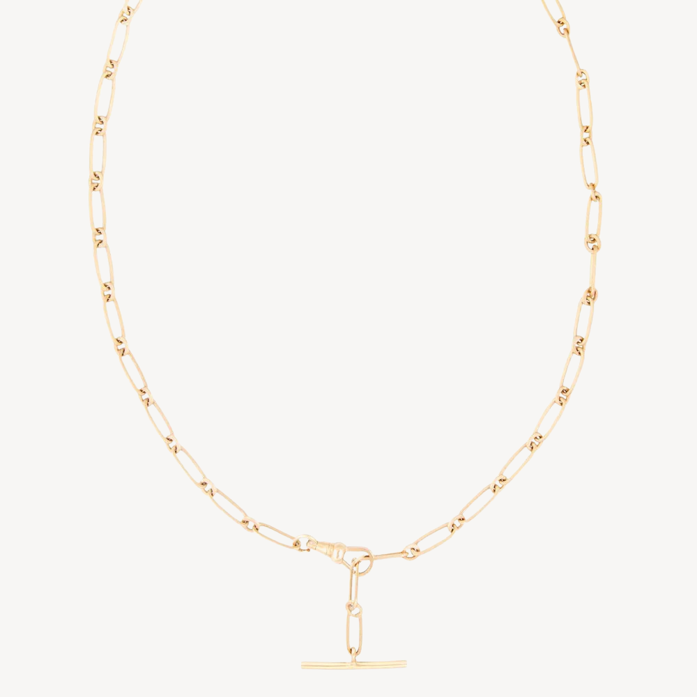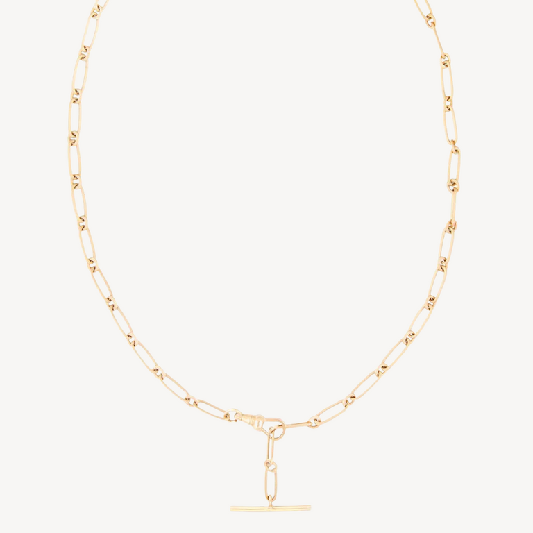 This highly original gold necklace with its large links closes with a snap hook. A unique accessory that opens the doors to fame.