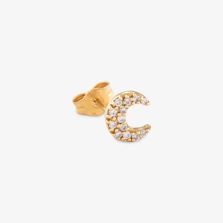 Moon Earring Full Diamond Yellow Gold