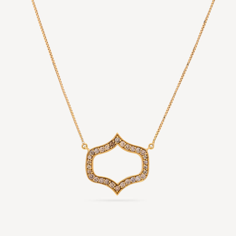 This yellow gold necklace features a medallion adorned with sparkling brown diamonds, a signature of Ara Vartanian's refined style. Symbolizing inner strength, brown diamonds evoke stability and anchoring.