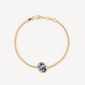 This magnificent oval Diamantine bracelet in yellow gold is adorned with diamonds and sapphires, bringing a touch of sparkle and color to your wrist.