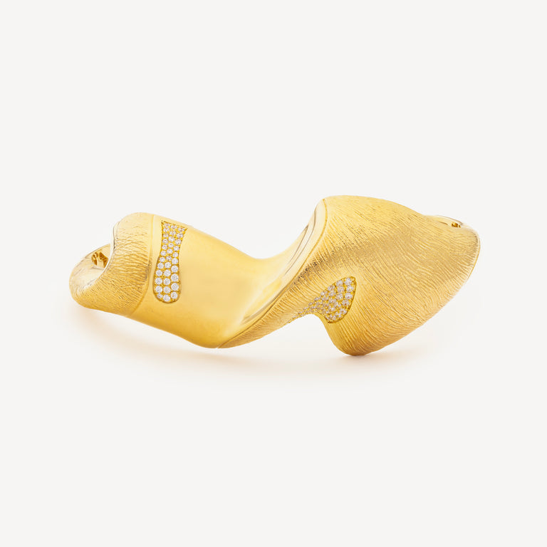The Arcadia bracelet in brushed yellow gold, with its 15.5g and 0.36 carat of diamonds, embodies modern elegance and timeless sophistication.