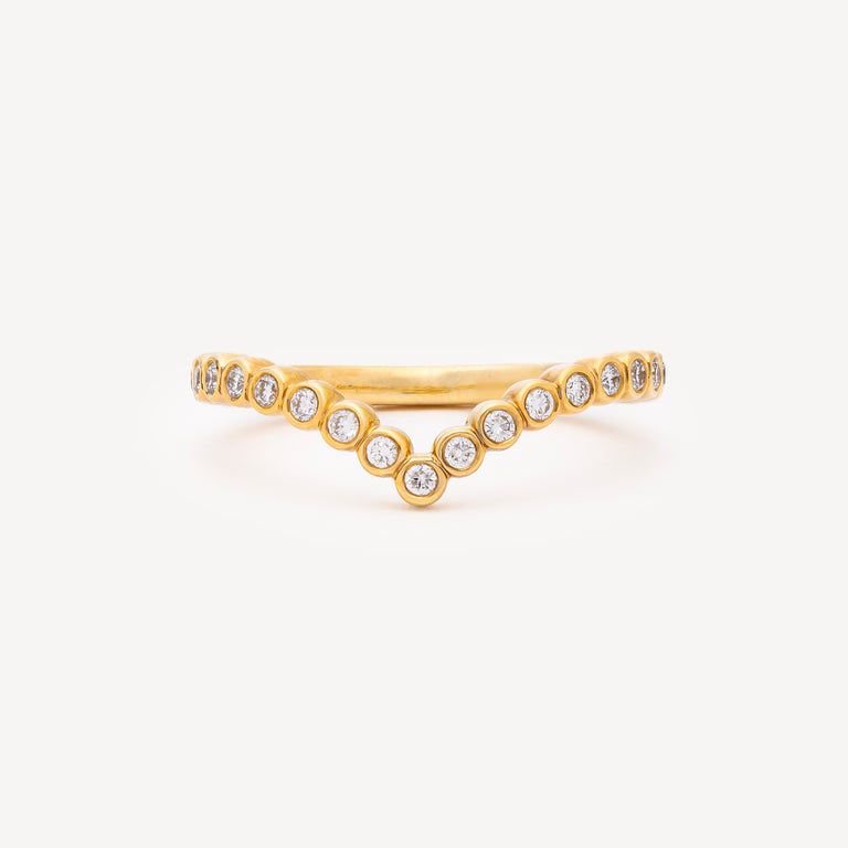 Born of a collaboration between New York and Singapore, B.P. de Silva's Lovedrops collection embodies more than a year of research into filigree and proportions, to create jewelry that is both sensitive and memorable. The Devotion ring unveils a curved half-alliance in gold, set with brilliant-cut white diamonds in a closed setting, a refined and timeless piece. White diamonds symbolize purity and harmony, bringing clarity, inner strength and emotional balance to the wearer.