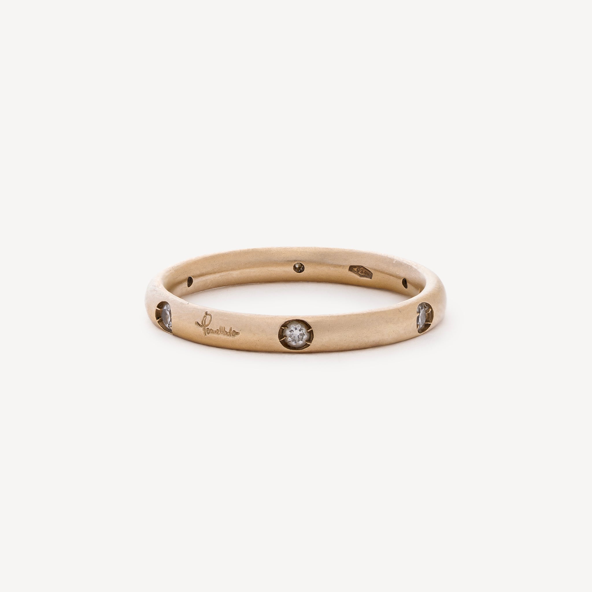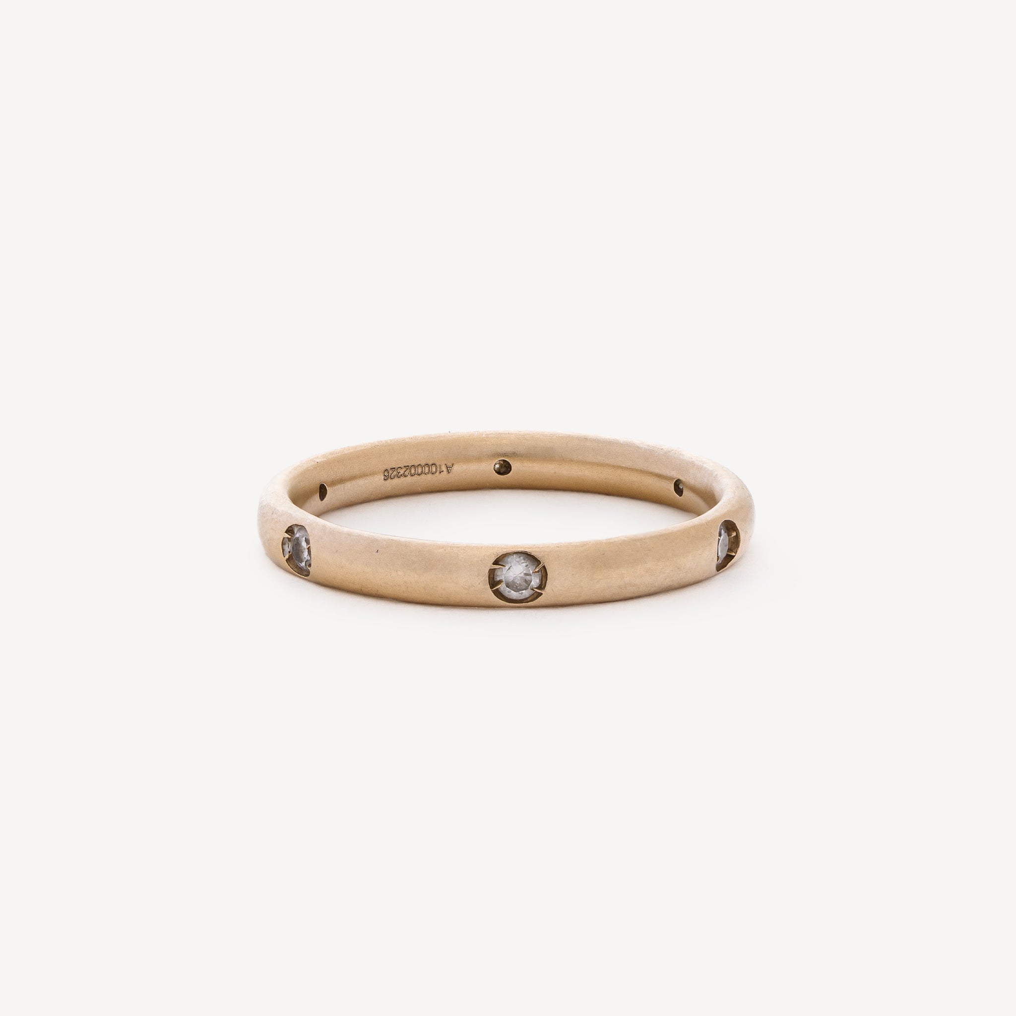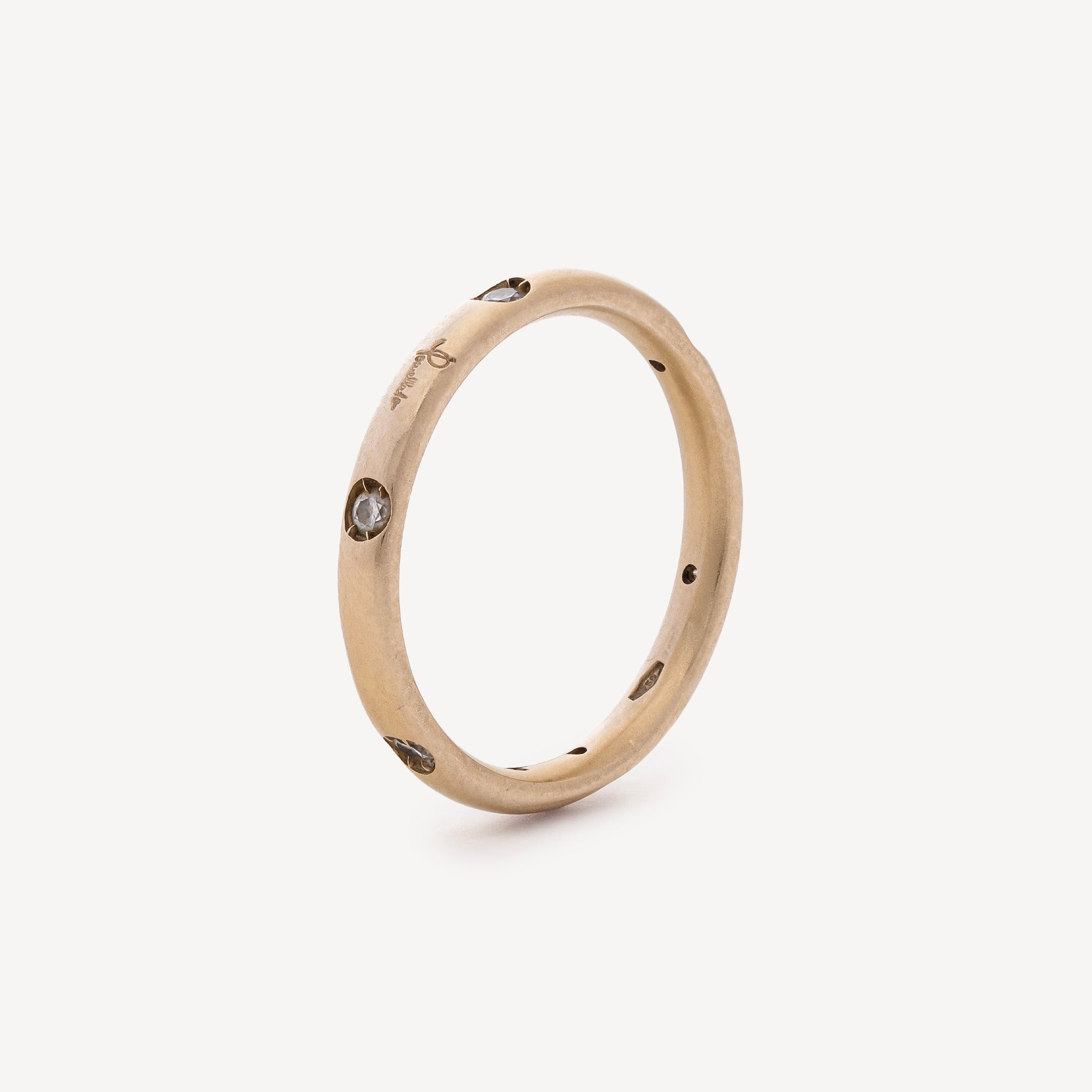 Bague en or jaune ornée de six diamants blancs taille brillant.