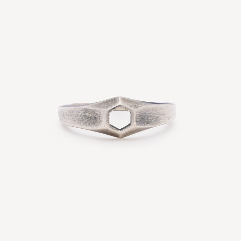 This Hexagone ring in Silver perfectly reflects simplicity and authenticity through the shapes and materials used.