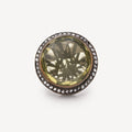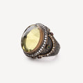 Silver ring set with a prasiolite stone, zircons, rubellite and peridot.