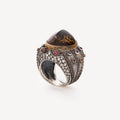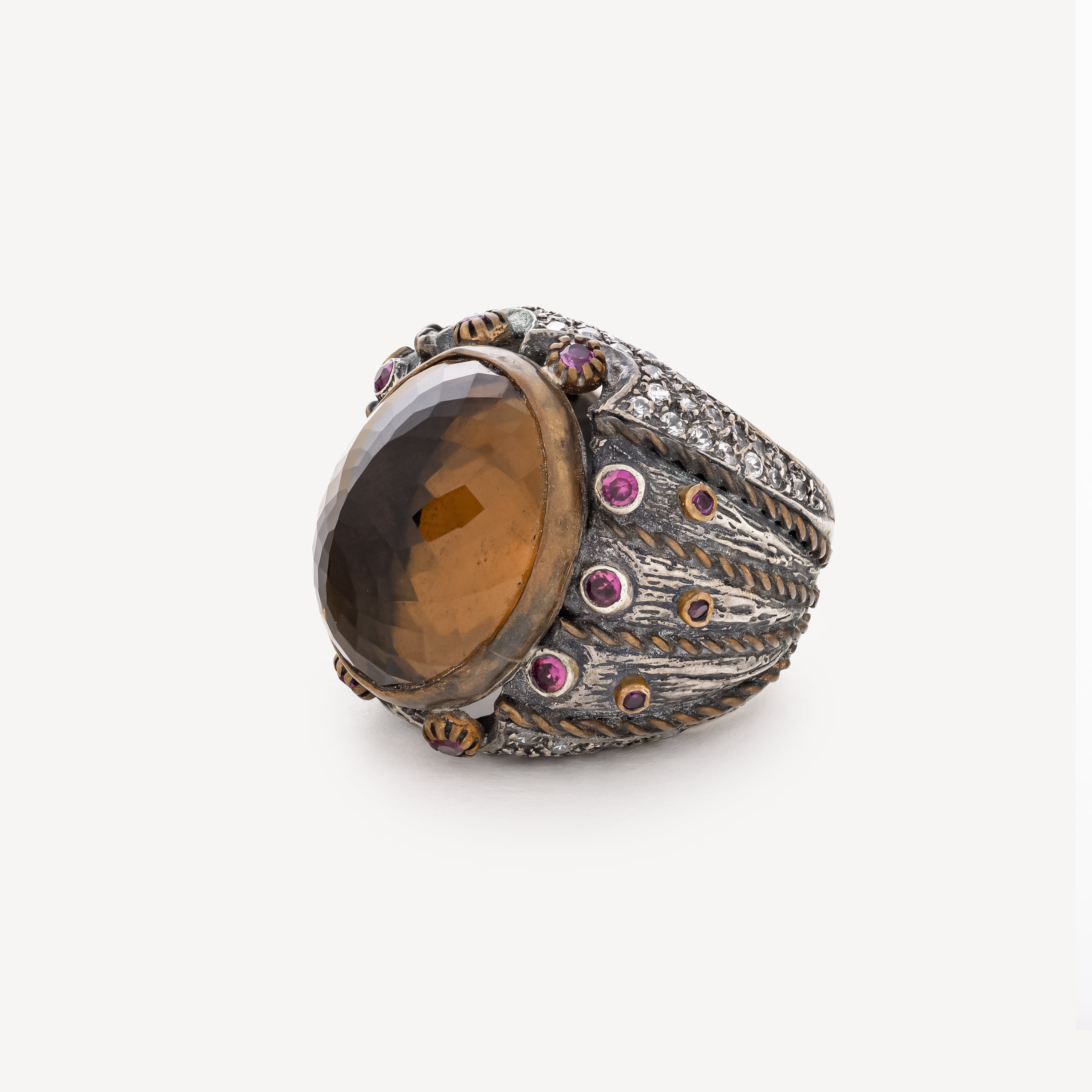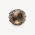 Silver ring set with a Quartz Honey stone, rubellites and zircons.