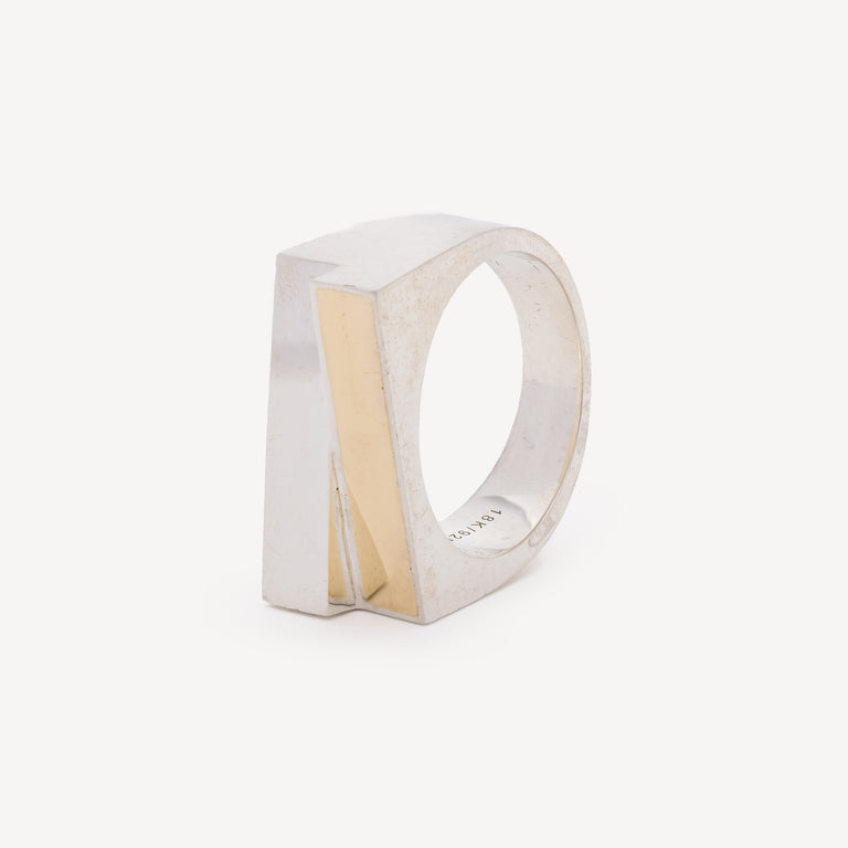 Add a touch of elegance to your style with this ring featuring a unique architectural design. Crafted in Silver and yellow gold, this remarkable piece plays on contrasts and bold geometric shapes.