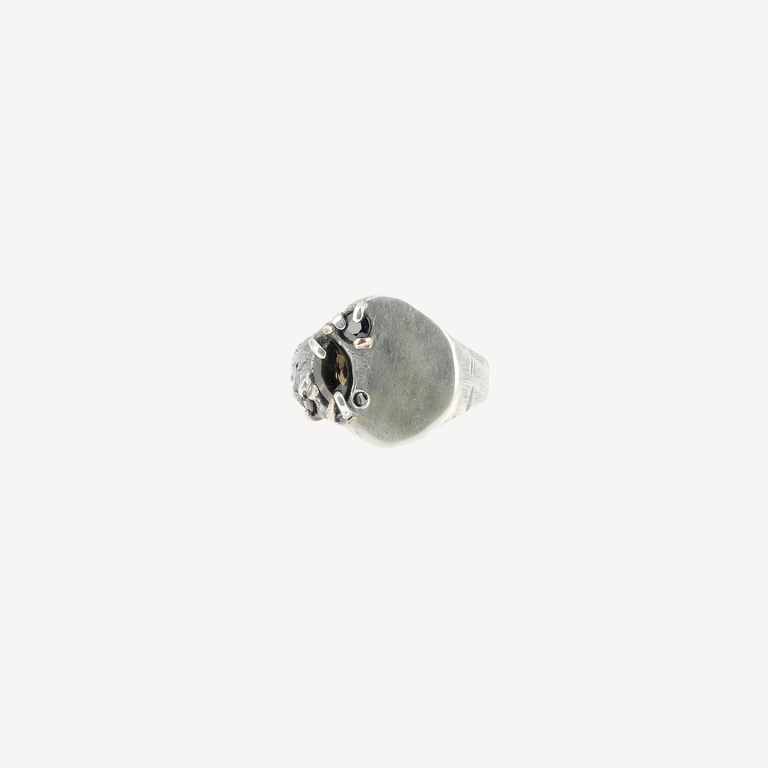 Black Diamond, Garnet and Smoky Quartz Chevalière