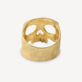 Explore the exquisite singularity of the iconic skull and crossbones ring, adorned with a white diamond baguette finely set in an 18-carat recycled yellow gold frame. This creation elegantly fuses the bold symbolism of the skull and crossbones with the timeless brilliance of diamonds, embodying a subtle marriage between refined luxury and a touch of originality.