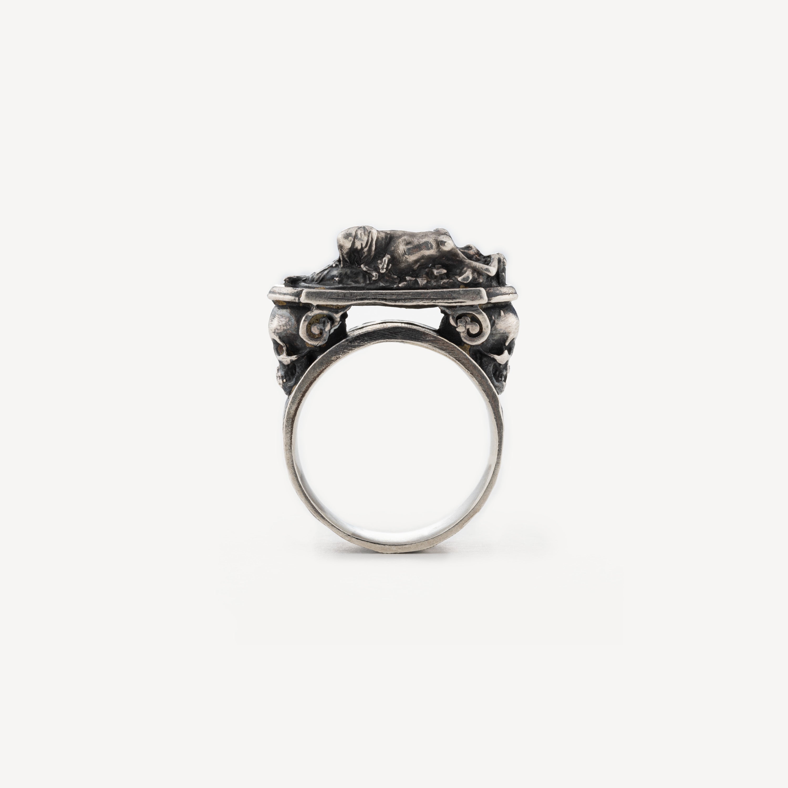 Thick Art Nouveau Silver ring with body and skull.
