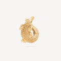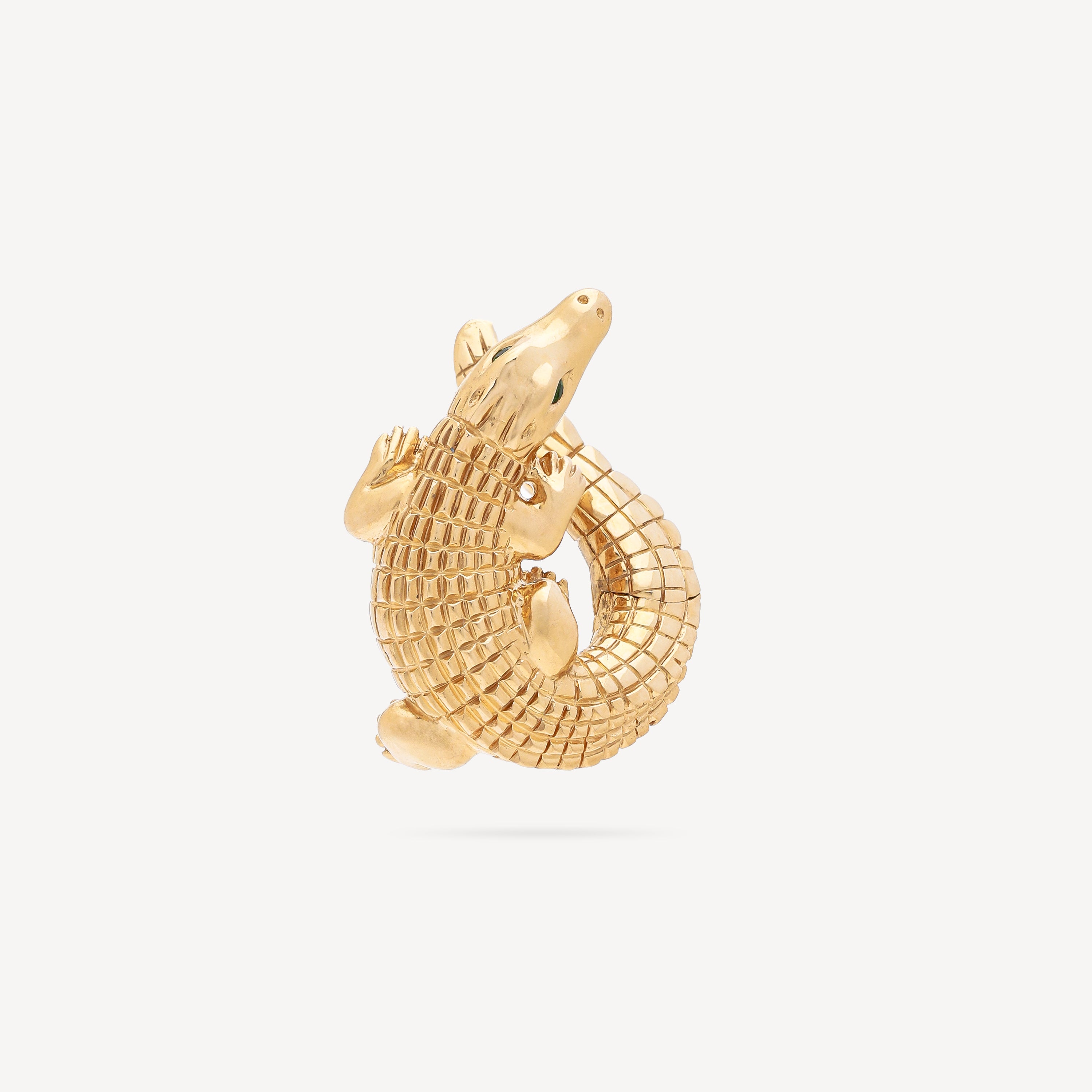 The gold alligator's sinuous body is designed to wrap around the earlobe. Its elegant jaw sits at the front, while its tail hides behind the lobe, acting as a closure. With its brilliant tsavorite eyes, this alligator jewel exudes captivating glamour.