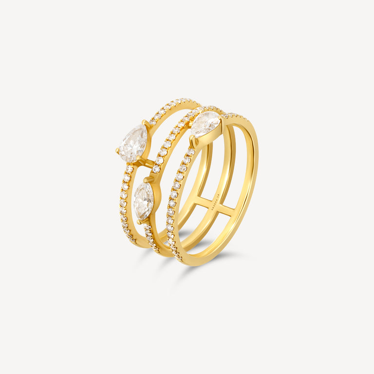 La bague Pilier allie l'élégance intemporelle de l'or jaune 750 à la brillance des diamants, selon la signature distinctive de By Phoebe. Son architecture à trois rangs crée une composition harmonieuse et raffinée. Le diamant est reconnu pour éclaircir l'esprit qui le porte.