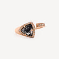 Rose Gold ring set with a tourmaline and white quartz.