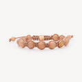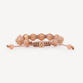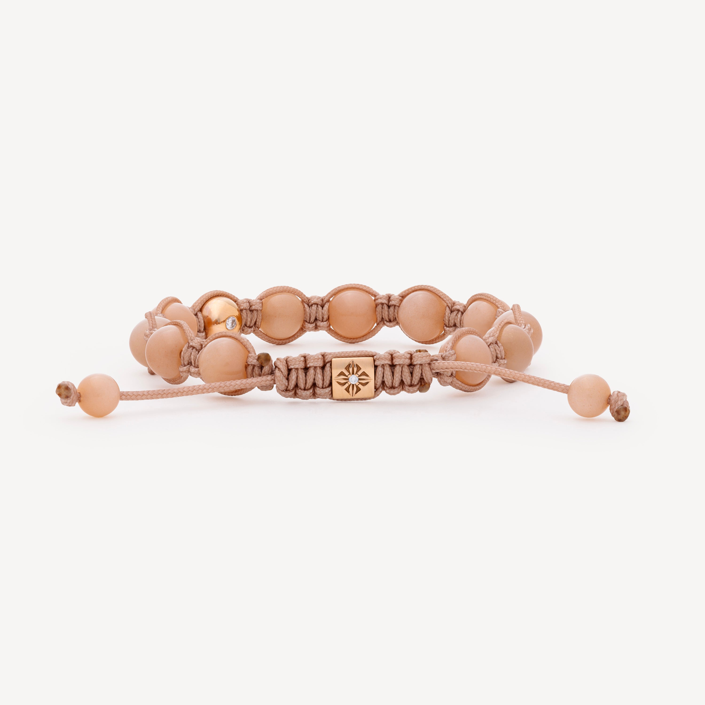Bracelet mounted on a pink cord composed of : 13 moonstone beads, 1 Rose Gold bead adorned with white diamonds and 1 Rose Gold lock adorned with a white diamond.