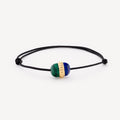 Magnificent 14ct yellow gold bead in two-tone lapis and malachite, mounted on an adjustable black cord.