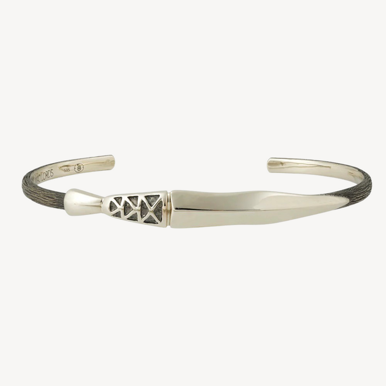 This white gold bead with diamond-set tip is a replica of an 18th-century ornamental dagger. Used in ceremonies by ancestral tribes, it represents a link between history and the present. Its blade is designed as a peaceful object, never to be used for anything other than art and music. Versions in yellow, rose or white gold are available.