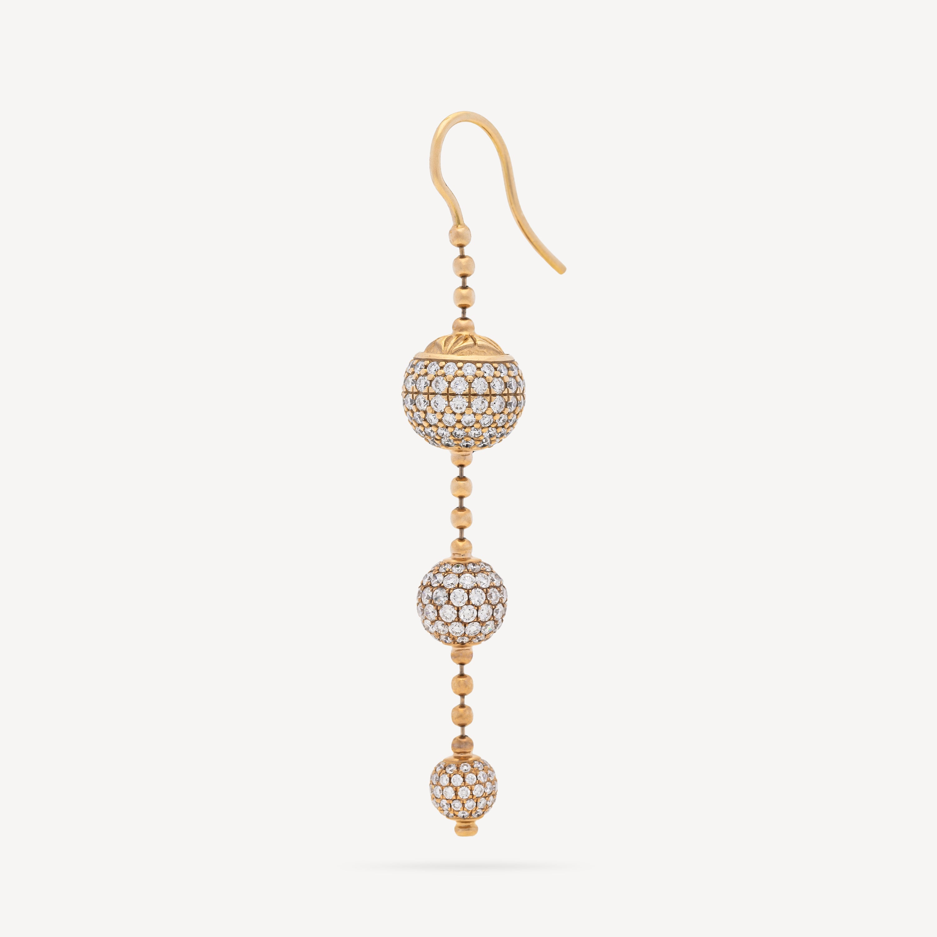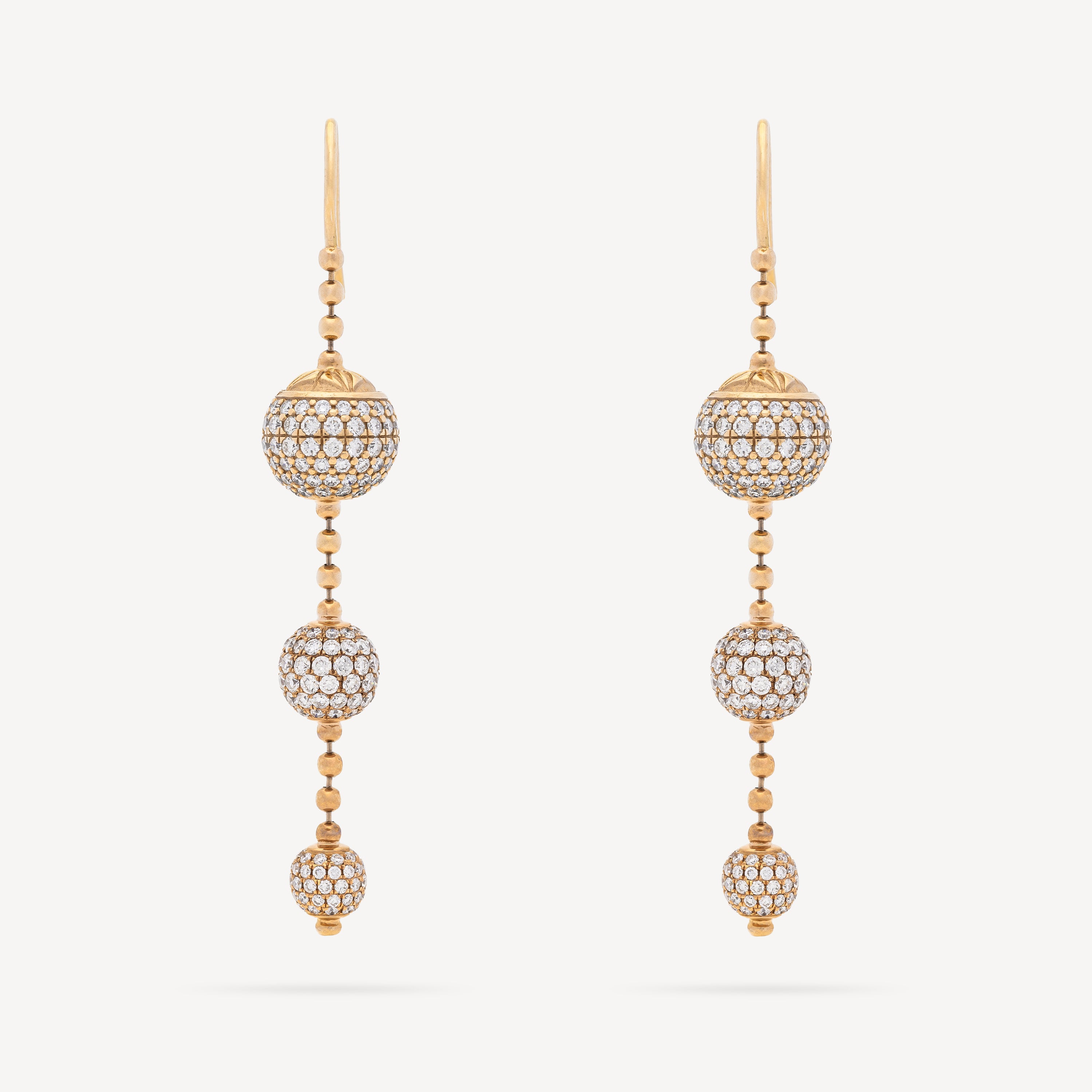 Pendant earrings in Rose Gold composed of three beads paved with white diamonds.