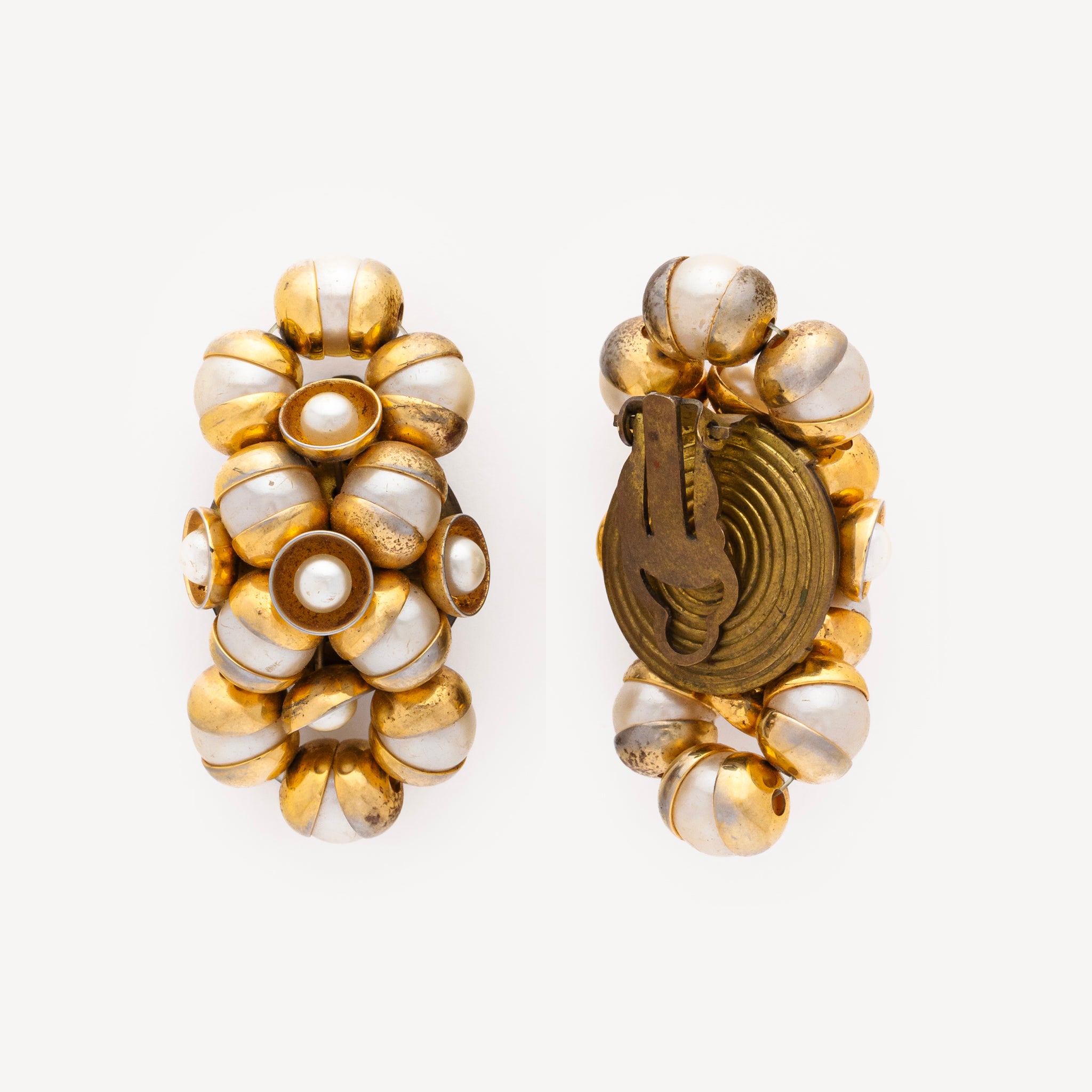 Vintage 1950s gold and pearl earrings. Clip clasp.