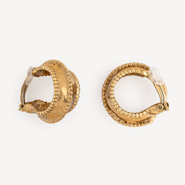 Vintage gold-finish metal clip hoop earrings.
