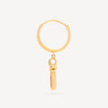 Small, ultra-light Hoop in yellow gold adorned with white diamonds. The sword represents ennoblement, light and knowledge, cutting the "material" chains that hinder personal fulfillment.