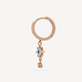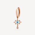 The Evil Eye earring in Rose Gold features an eye in white and bleur enamel, and sparkling white diamonds.