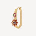 This Hoop in yellow gold is delicately adorned with a red sapphire flower.