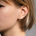 White gold earring paved with piercing-effect white diamonds, to be worn alone or in a stack.