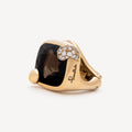 Yellow gold clip earrings adorned with a smoky quartz and a diamond-paved claw.