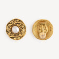 Vintage clip earrings in gold-finish metal with central pearly bead.