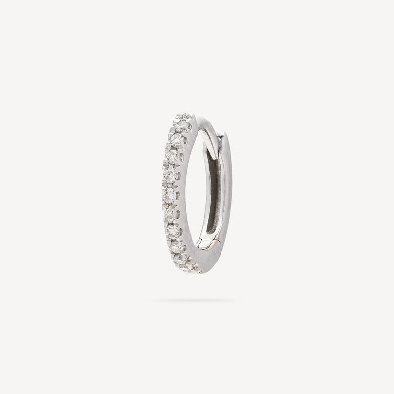 Hoop in white gold, half paved with white diamonds.