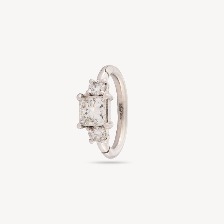 Piercing Hoop 8mm White Gold Princess 3x3mm