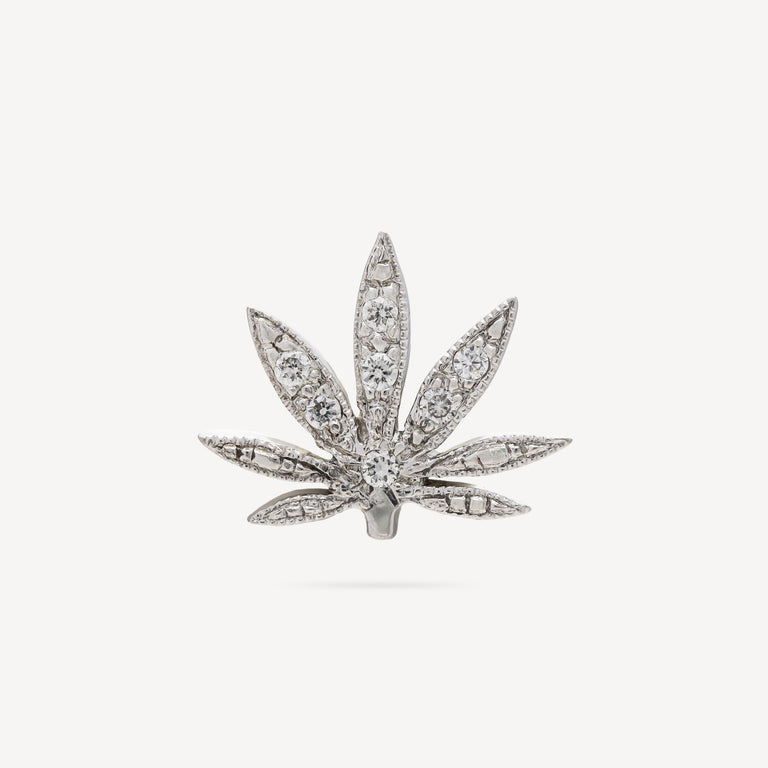 Stud white gold leaf-shaped earrings set with white diamonds.