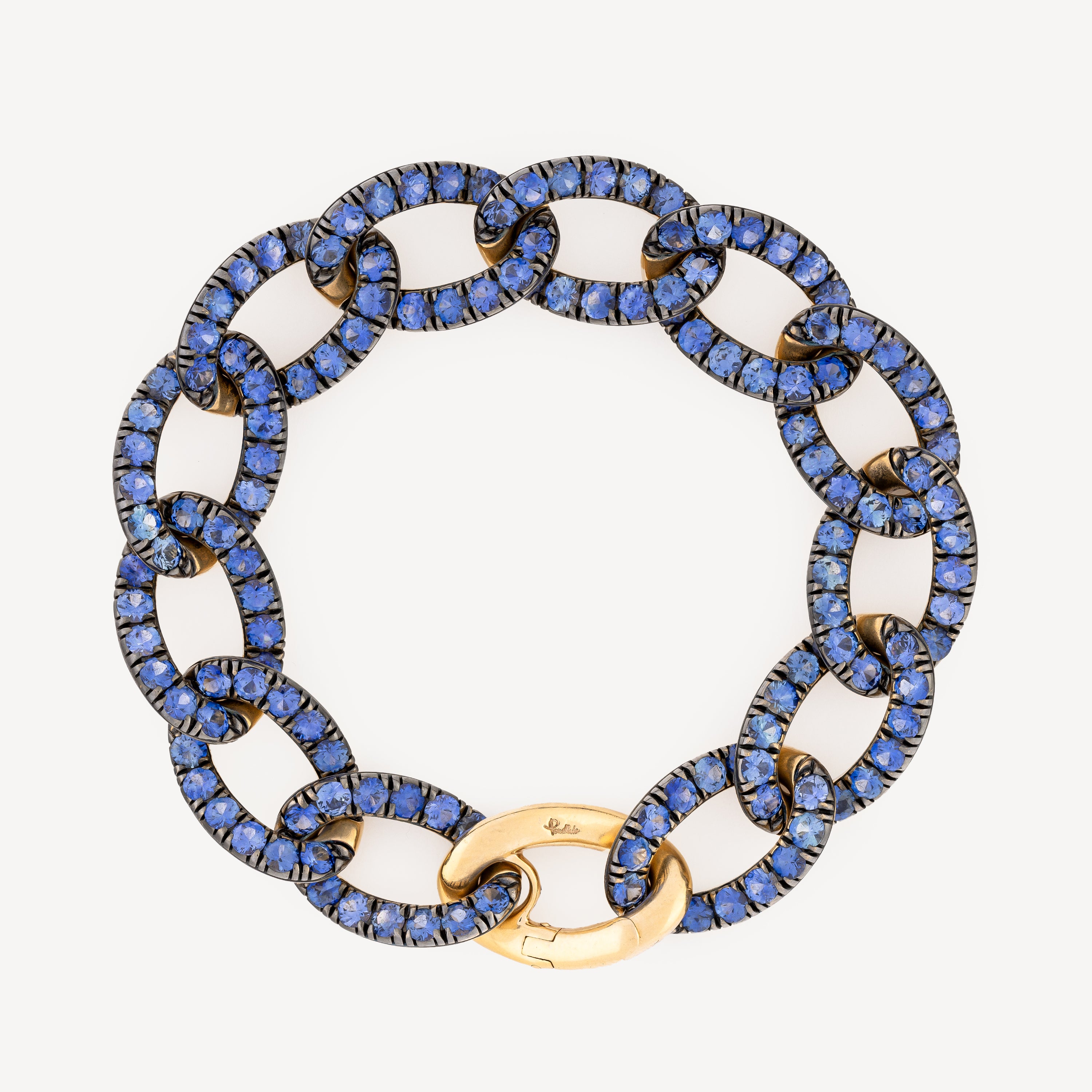 Chain bracelet in 18ct yellow gold paved with blue sapphires.