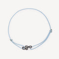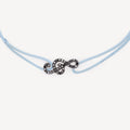 Bracelet with sound key in white gold paved with black diamonds, mounted on a light blue cord.