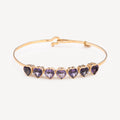 This wonderful 18-carat yellow gold bracelet is embellished with a line of amethyst hearts. Ingeniously designed, this unique bead allows the stones to move slightly, adding a playful yet elegant touch to this piece.