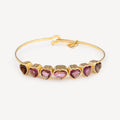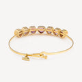This wonderful 18-carat yellow gold bracelet is embellished with a line of pink tourmaline hearts. Ingeniously designed, this unique bead allows the stones to move slightly, adding a playful yet elegant touch to this piece.