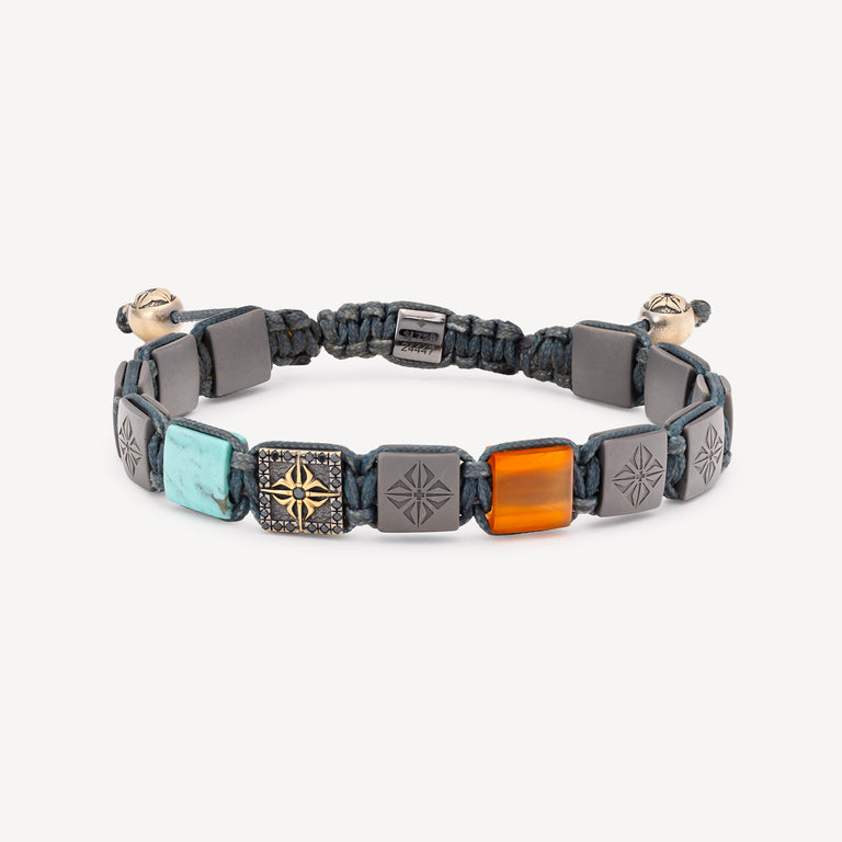 Bracelet in grey ceramic, turquoise, gold and black diamonds.