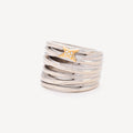 A signature ring from the Maison, the Kiff and Kiss ring interweavesSilver filaments adorned with the Mauboussin star in yellow gold and paved with diamonds. White diamonds symbolize absolute purity, brightening the spirit, enhancing inner clarity and bringing balance and emotional harmony.