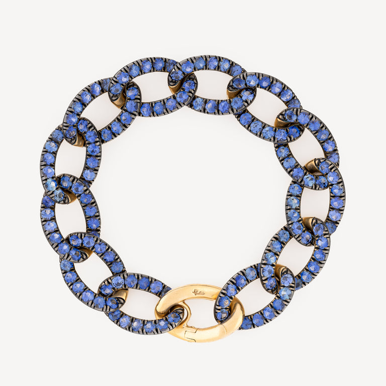 Chain bracelet in 18ct yellow gold paved with blue sapphires.