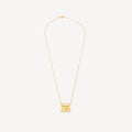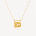 18kt yellow gold necklace with rectangular pendant featuring a central white diamond delicately surrounded by 8 small diamonds and a diamond at each corner. White diamonds symbolize absolute purity, brightening the spirit, enhancing inner clarity and bringing balance and emotional harmony.