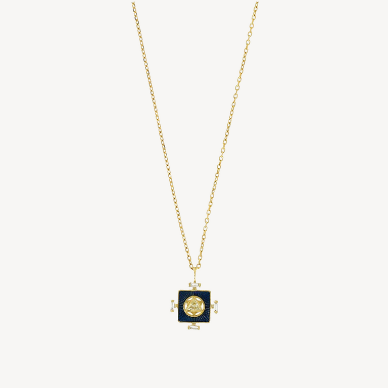 Blue Yantra Third Eye Chakra and Trillion Diamond necklace