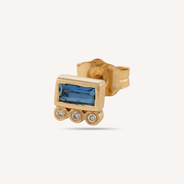 Stud Aquamarine Baguette Diamond Yellow Gold