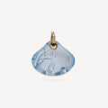 Sky blue topaz pendant engraved with a flower of life and set in yellow gold.