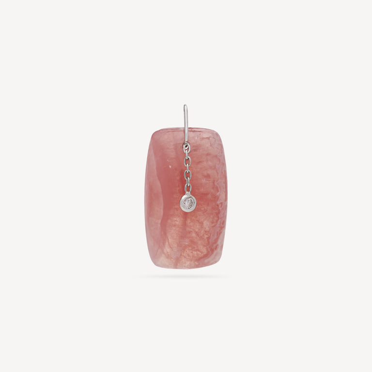 Rectangular rhodochrosite pendant with loose white diamond. White gold clasp.