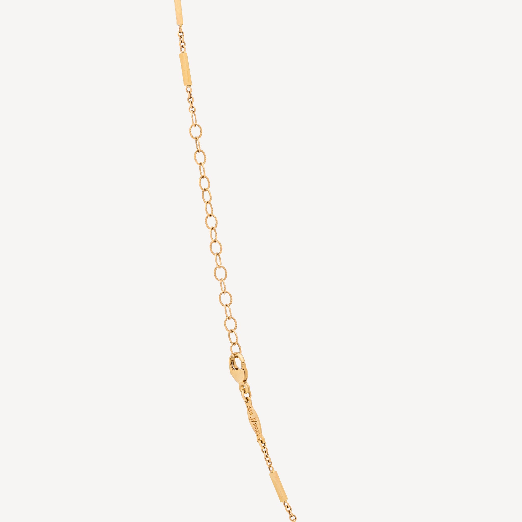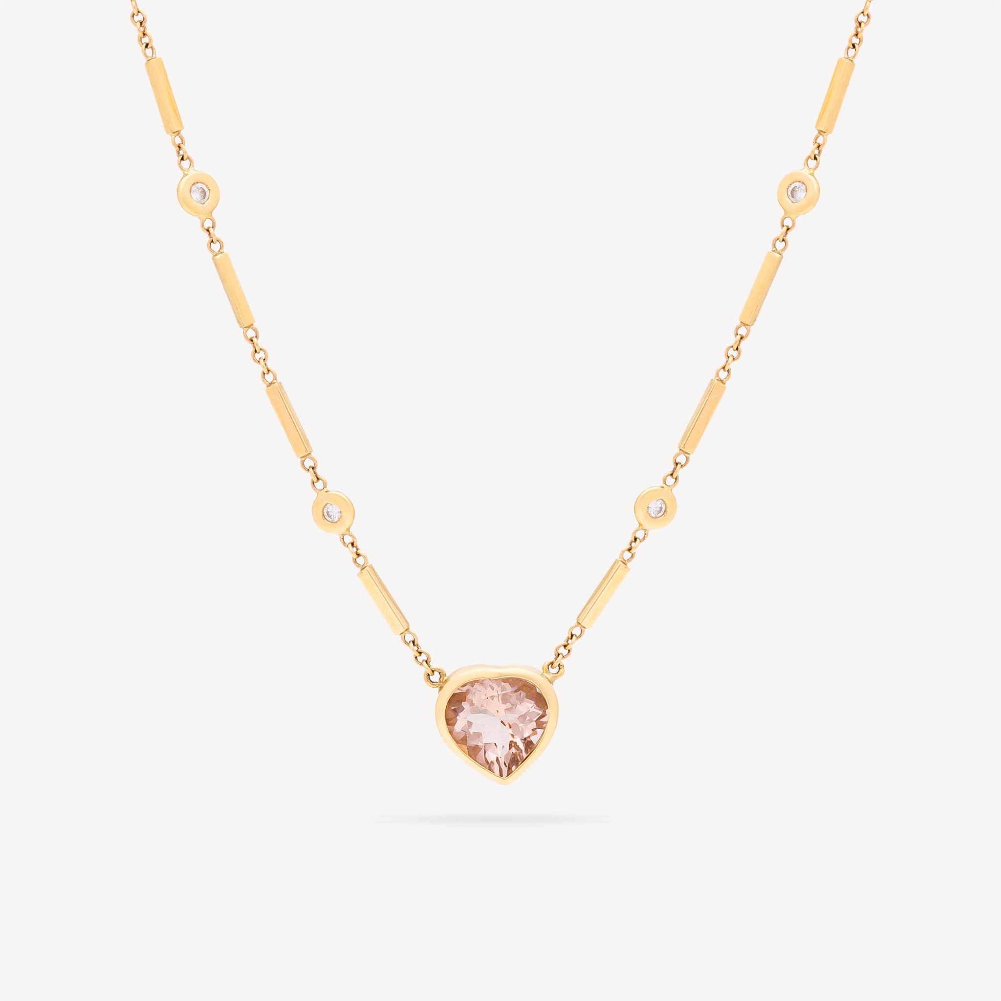 Le collier Morganite Heart Gold and Diamonds de Jacquie Aiche est une déclaration d'amour incarnée en or jaune. Cette création emblématique associe l'élégance de quatre diamants blancs à la douceur rose poudré de la morganite, formant un cœur captivant qui célèbre la tendresse et la connexion émotionnelle. Le diamant symbolise la pureté et l'invincibilité spirituelle, tandis que la morganite, pierre de l'amour divin, apaise le cœur, encourage la compassion et ouvre les portes à une affection profonde et authentique. Ensemble, ces gemmes créent une synergie harmonieuse qui renforce les liens du cœur et élève l'âme vers des vibrations d'amour inconditionnel.